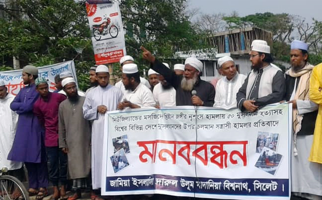 নিউজিল্যান্ডের মসজিদে হামলার প্রতিবাদে বিশ্বনাথে মানববন্ধন