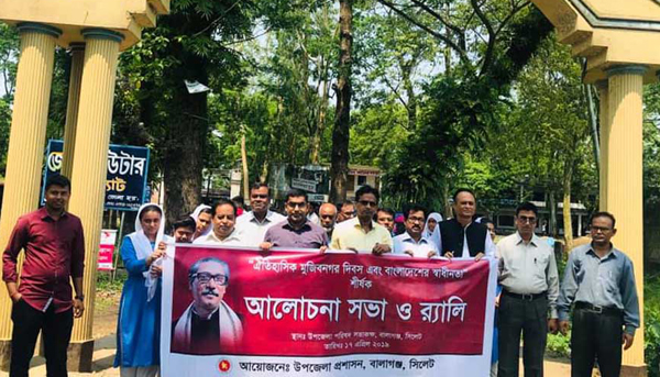pic 17.04.2019বালাগঞ্জ প্রতিনিধি :: বালাগঞ্জ উপজেলা প্রশাসনের উদ্যোগে বুধবার (১৭ এপ্রিল) ঐতিহাসিক মুজিবনগর দিবস পালন করা হয়েছে। এ উপলক্ষে র‌্যালি, আলোচনা সভা ও প্রামাণ্যচিত্র প্রদর্শনী অনুষ্ঠিত হয়। সকাল ১১টায় উপজেলা পরিষদ মিলনায়তনে অনুষ্ঠিত আলোচনা সভায় সভাপতিত্ব করেন বালাগঞ্জ উপজেলা নির্বাহী অফিসার নাজমুস সাকিব।