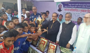 বঙ্গবন্ধু গোল্ডকাপ টুর্নামেণ্টে চ্যাম্পিয়ন থানাগাও সরকারি প্রাথমিক বিদ্যালয় ও বঙ্গমাতা গোল্ডকাপ টুর্নামেণ্টে চ্যাম্পিয়ন চক দৌলতপুর সরকারি প্রাথমিক বিদ্যালয়ের খেলোয়াড়দের হাতে পুরস্কার তুলে দেন অতিথিবৃন্দ।