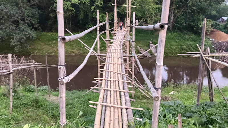 বাসিয়া নদীর বুকে আজও নড়বড়ে বাঁশের সাঁকো : একটি পাকা সেতুর জনদাবি দীর্ঘদিনের